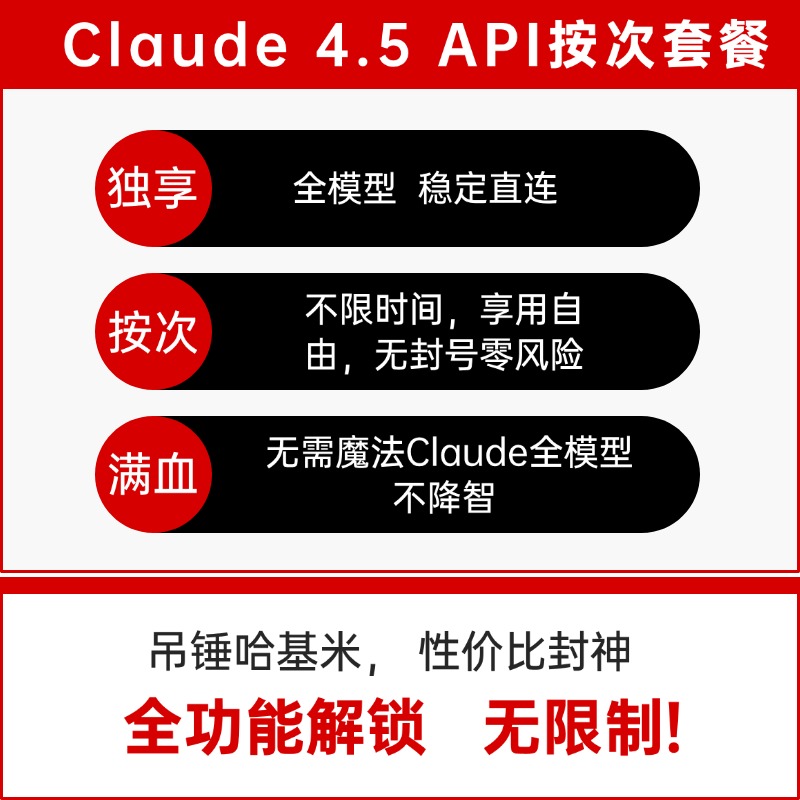 Claude Opus4.6/4.5|Sonnet4.5/4.6 API 次卡 可续充|满血版无降智|国内直用高并发